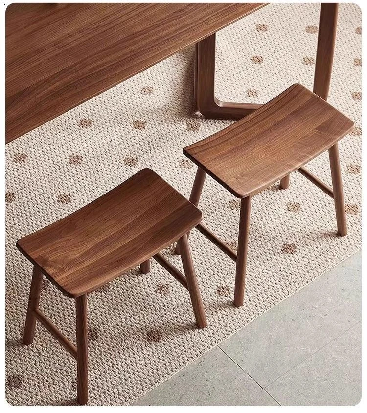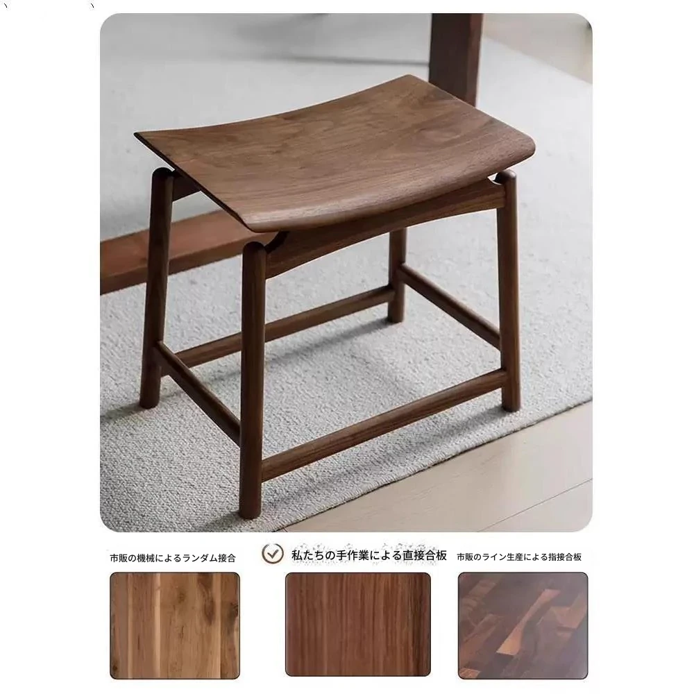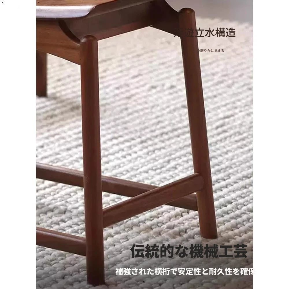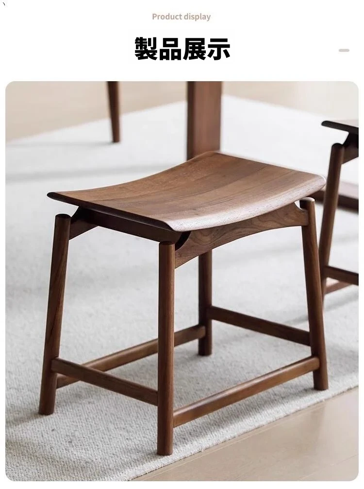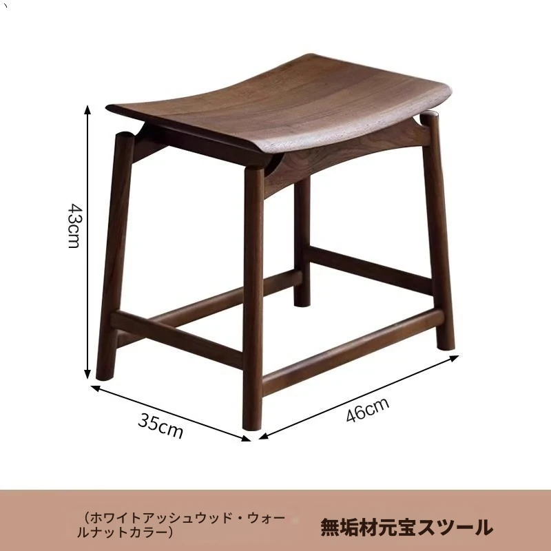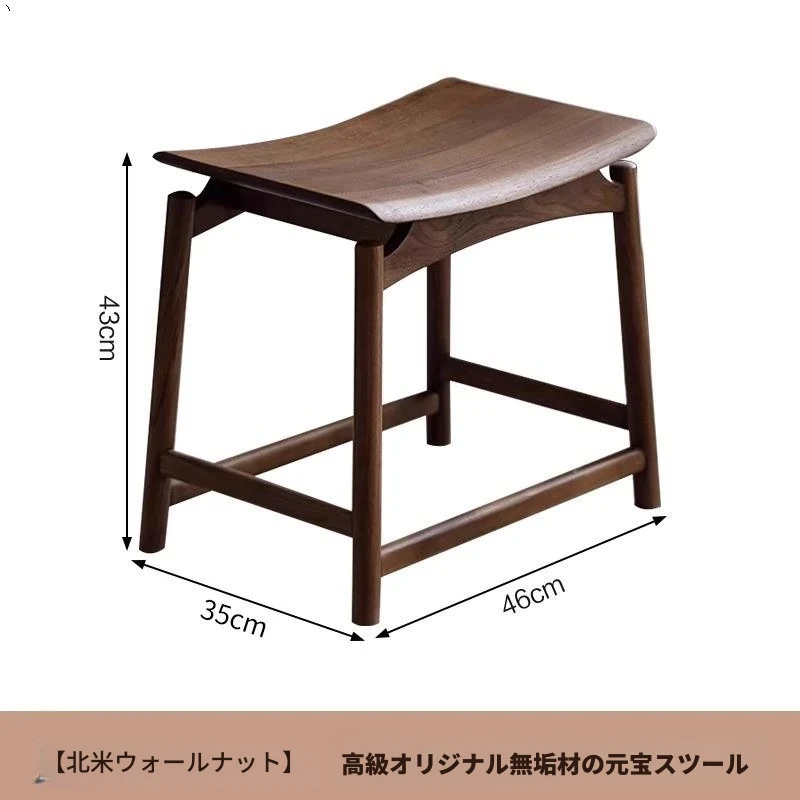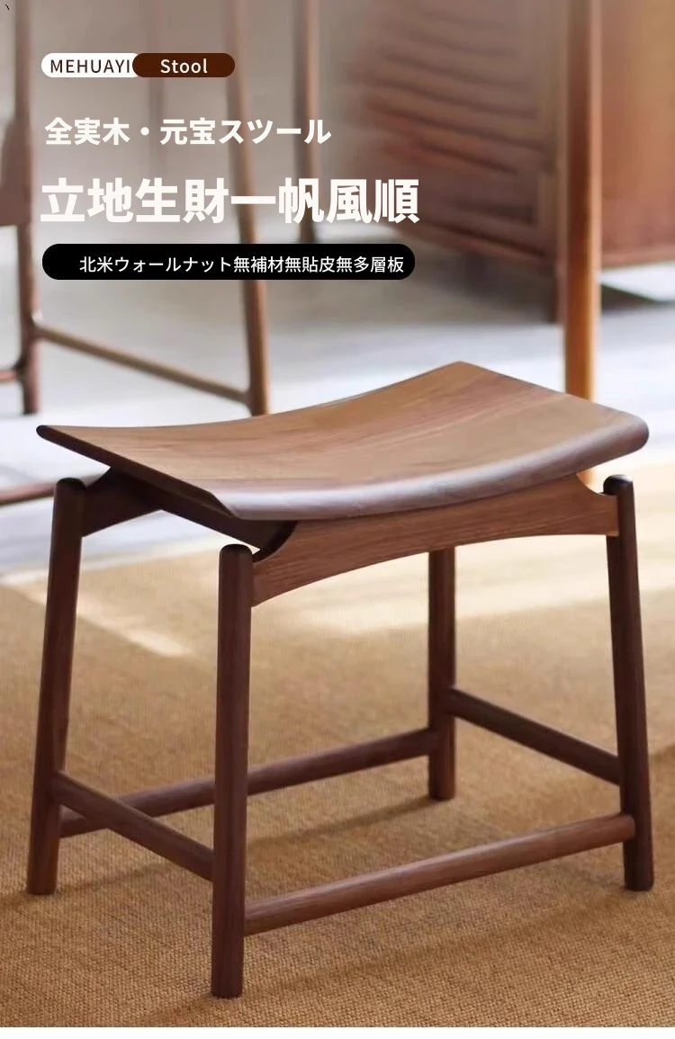 胡桃木の元宝スツール - 新しい中式デザインの全木製、シンプルでスタイリッシュな家用ドレッシングスツール。馬鞍型で、化粧や日常使いに最適!高品質の素材で、どんなインテリアにもマッチします!