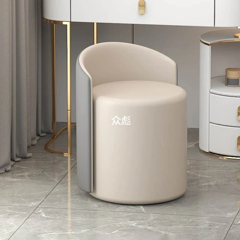 zb軽奢風の高級化粧スツール|女性の寝室にぴったりのモダンでシンプルなデザイン!メイク台やネイル施術に最適な快適な背もたれ付きラウンドスツール。あなたの美しさを引き立てるアイテム!
