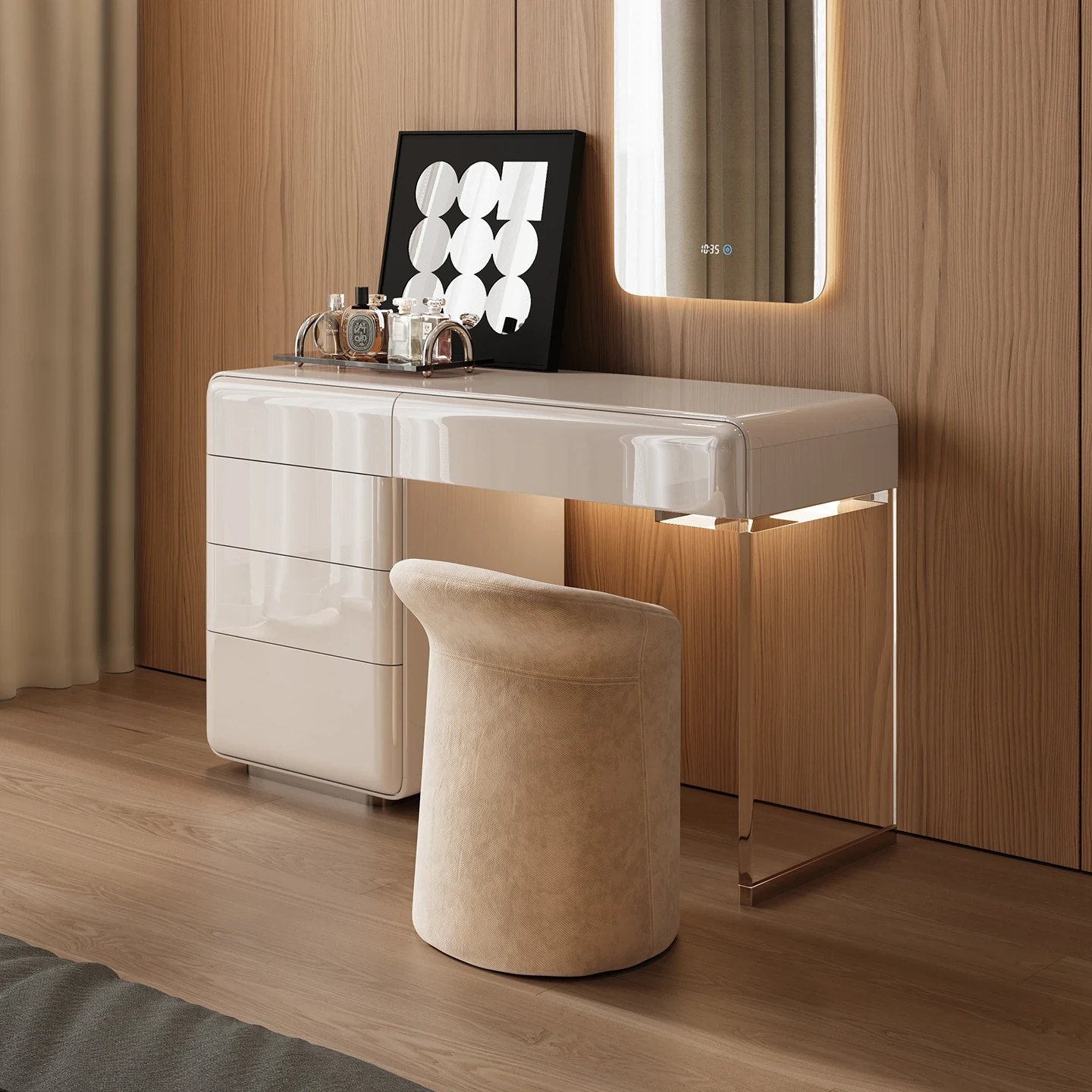 イタリアンミニマリズムのドレッシングチェア、回転可能なデザインで、洗練された寝室にぴったり。シンプルでスタイリッシュな化粧椅子、背もたれ付きで快適さも追求。あなたの美容タイムを特別なものに!