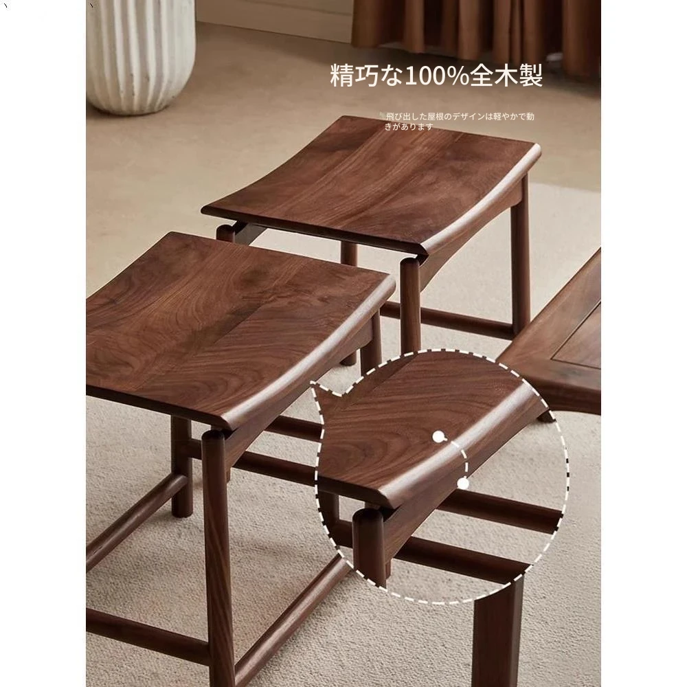 胡桃木の元宝スツール - 新しい中式デザインの全木製、シンプルでスタイリッシュな家用ドレッシングスツール。馬鞍型で、化粧や日常使いに最適!高品質の素材で、どんなインテリアにもマッチします!