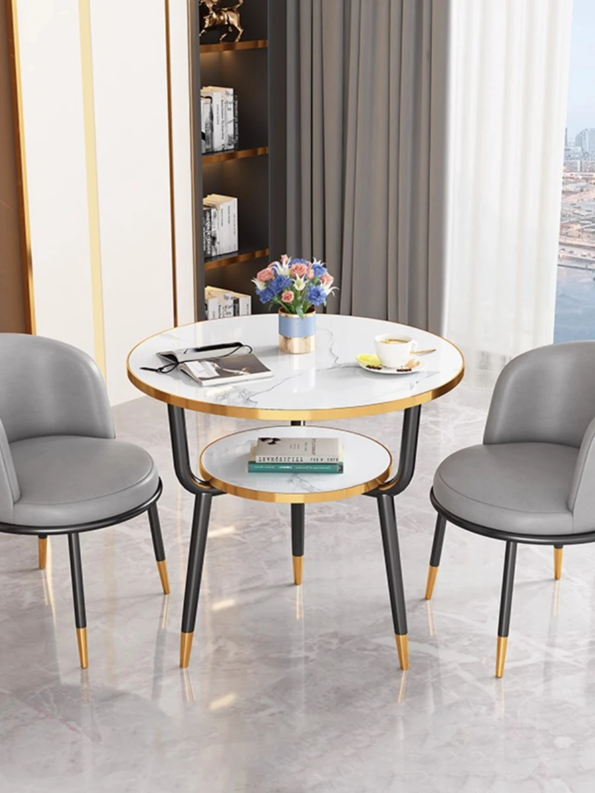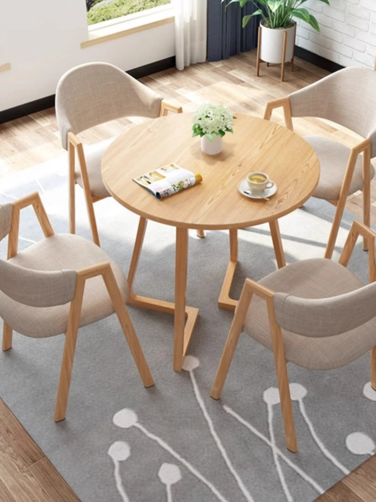 商用洽談テーブルセット:シンプルでスタイリッシュな小円卓と4脚の椅子。接待や休憩スペースに最適!快適な空間を演出し、ビジネスシーンを格上げします。