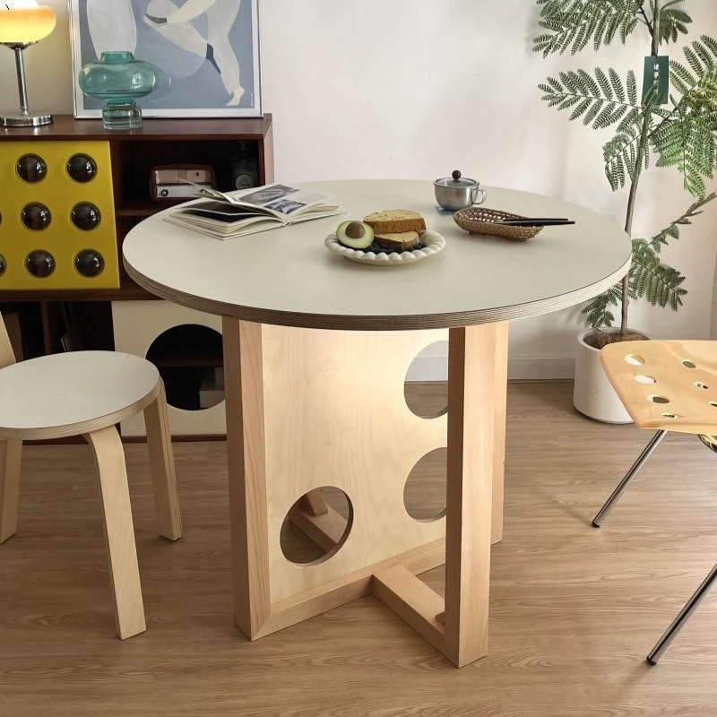 クリーム風味の韓国スタイル丸テーブル、コンパクトな家用サイズ!バーチ材とオーシャンボードを使用した実木製のダイニングテーブル。カフェやインテリアにぴったりなヴィンテージ感溢れるINSスタイルのテーブルです。