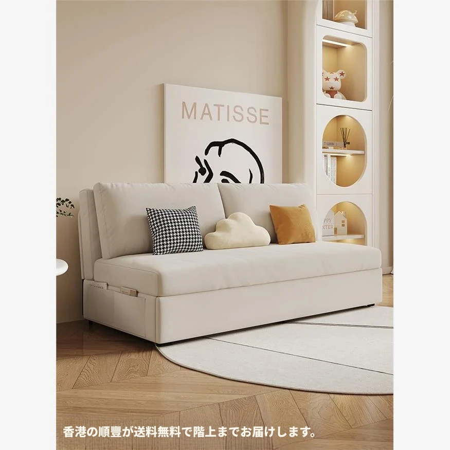 【香港送料無料】クリーミー風ソファベッド!折りたたみ式で小型住宅やアパートに最適な多機能ソファ。快適な眠りとリラックスタイムを実現します!