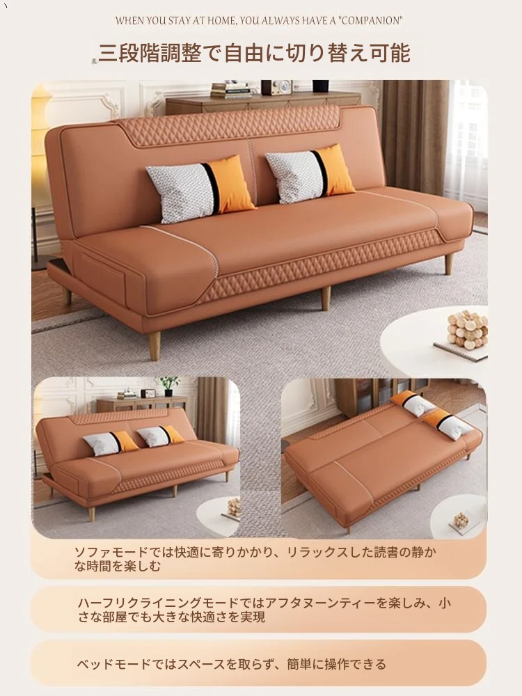 【香港送料無料】お手入れ簡単なテクノロジーファブリック製のソファベッド!折りたたみ可能で、狭いお部屋にもぴったりなシンプルデザイン。多機能で快適なリビング空間を実現します!