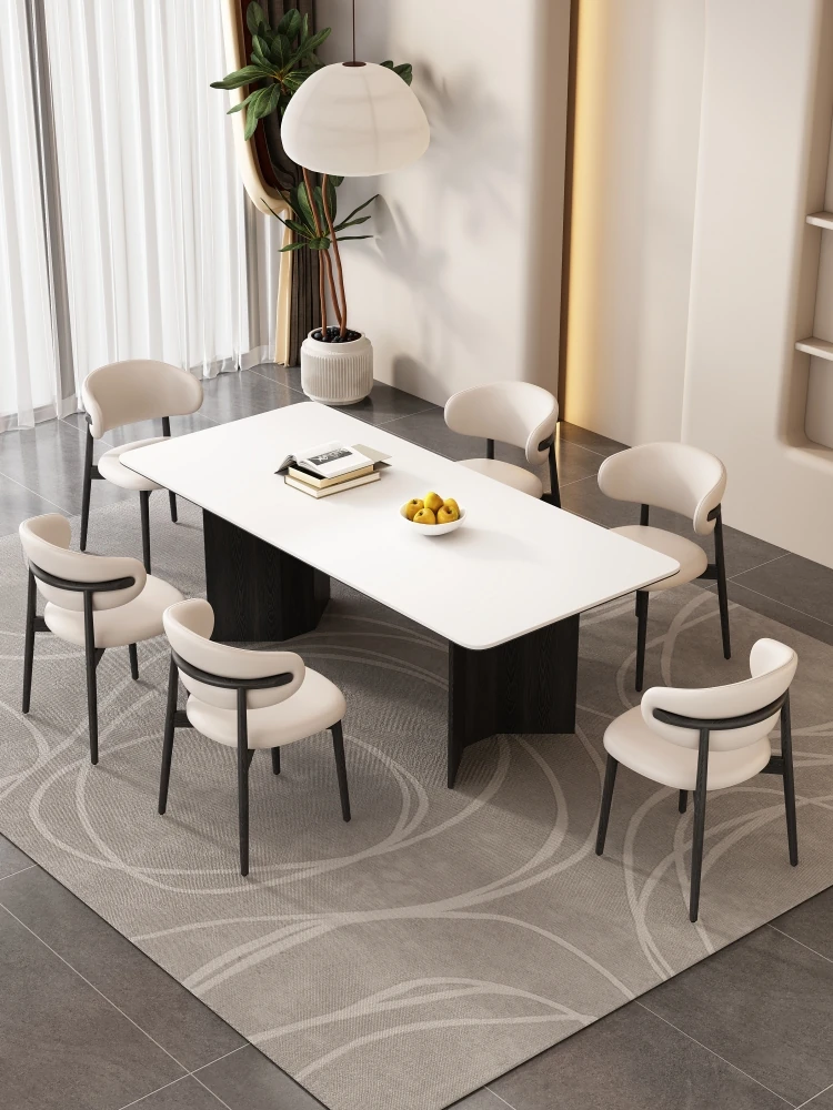 香港送料無料!軽奢感あふれる岩板製ダイニングテーブル&チェアセット。モダンでシンプルなデザイン、小さなスペースにぴったりな長方形のクリーム風テーブル。おしゃれな食卓を演出し、家族や友人との素敵なひとときをお楽しみください!