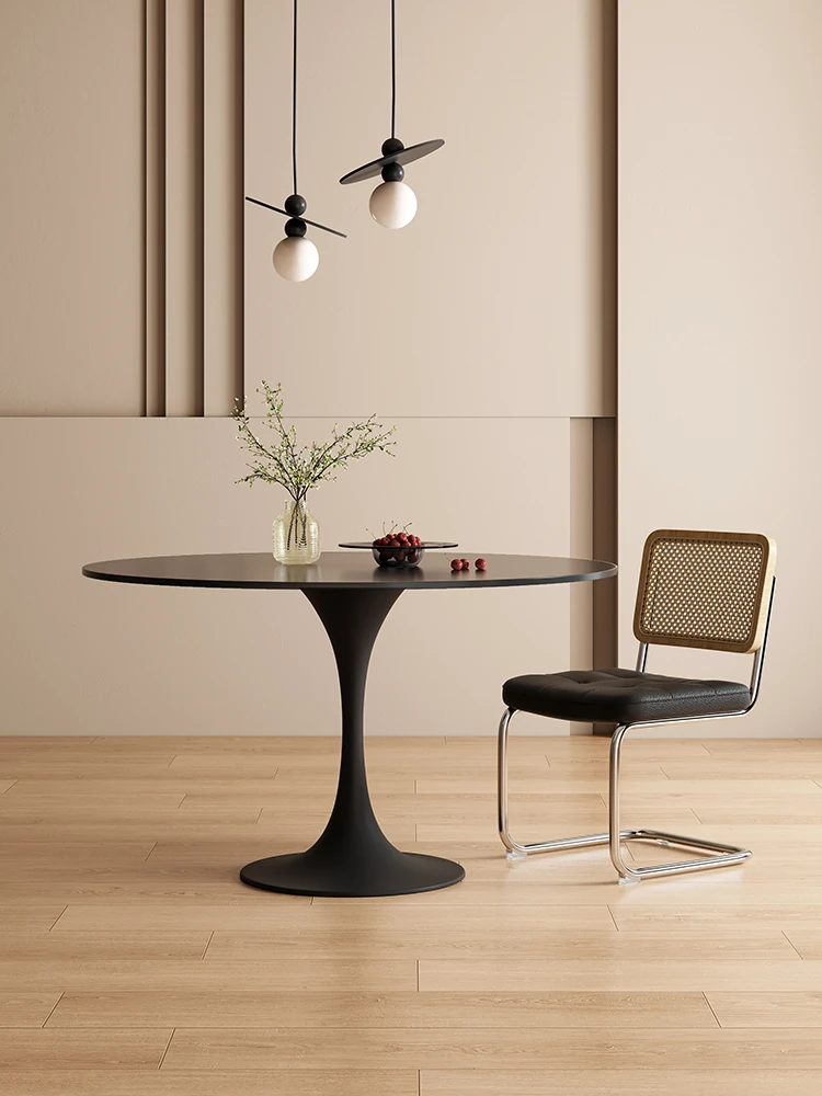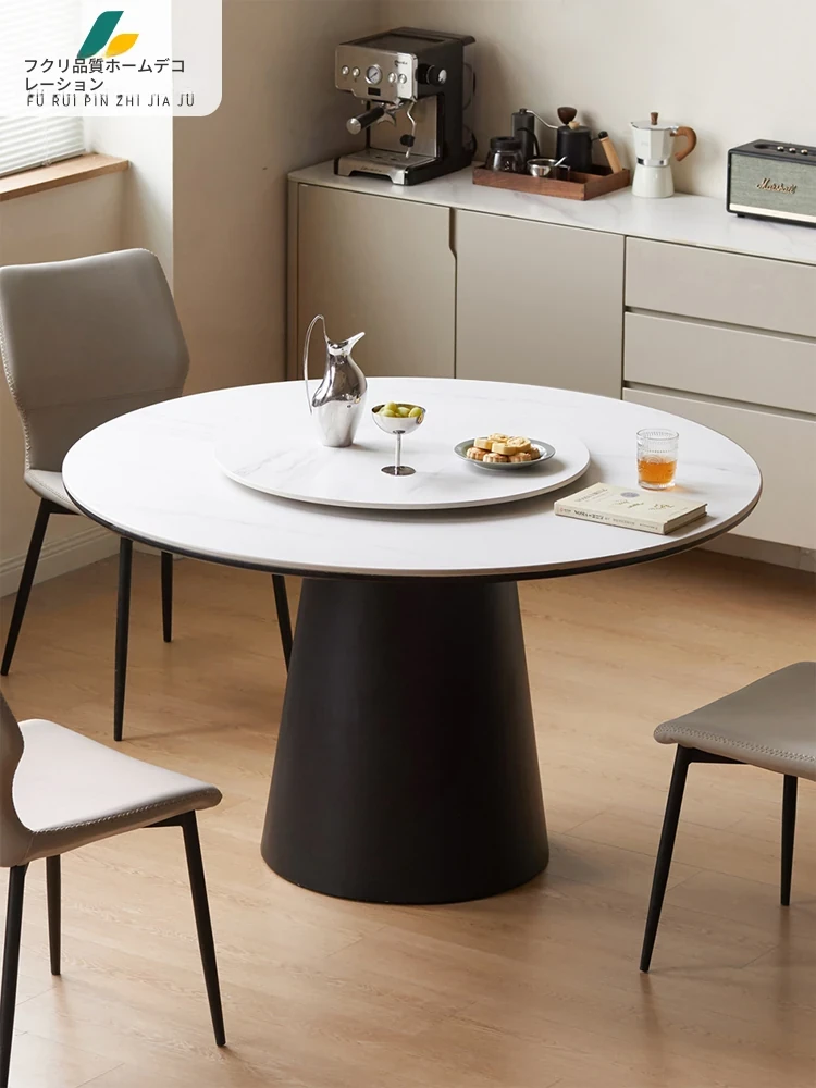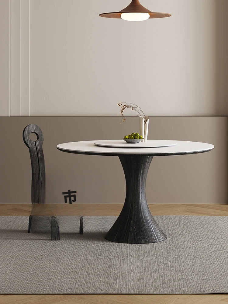 2025年新作!フレンチビンテージスタイルのラウンド岩板ダイニングテーブル。回転式テーブル付きで、小スペースにも最適な軽奢感あふれるデザイン。おしゃれな食卓を演出します!
