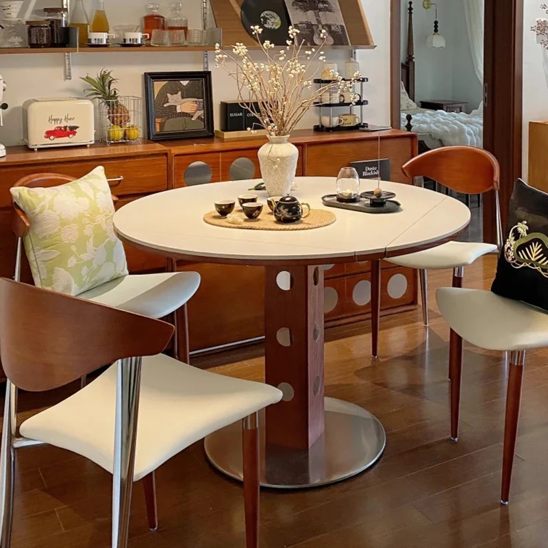 [香港送料無料] スタイリッシュな岩板ダイニングテーブル - モダンでシンプル、収納機能付きの伸縮式ラウンドテーブル。小スペースに最適な家用デザイン!