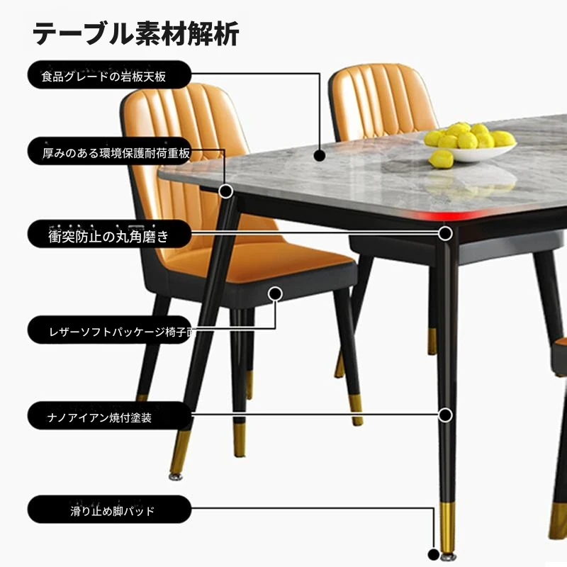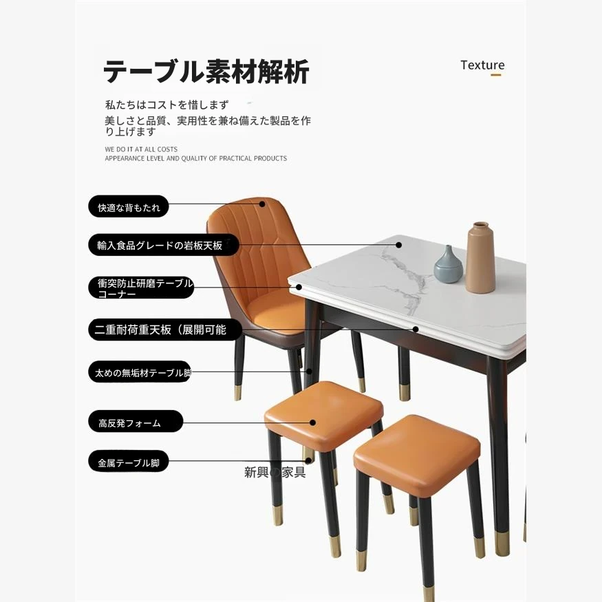 香港送料無料!薄型マット仕上げの厚手岩板ダイニングテーブル&チェアセット。現代的でシンプル、そしてラグジュアリーなデザインが小さなお部屋にもぴったり!快適な食事空間を演出します。