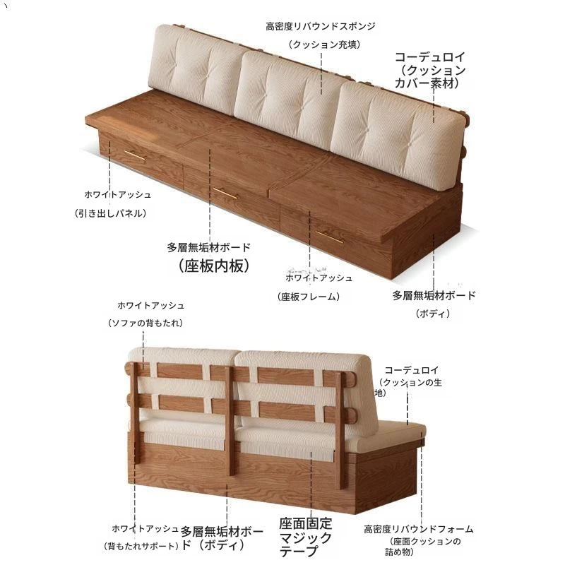 冬夏兼用!実木製ソファベッド - スペースを有効活用する引き出し収納付き、コンパクトな和風デザインで、小さなお部屋にも最適!